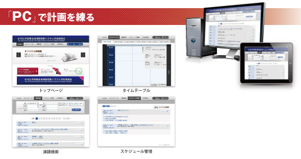 例えば、小規模の学術大会を開催されるお客様には…「抄録集の印刷をせずにKcon-naviのみ」もしくは、「プログラムはポケット版でコンパクトにして、抄録集はKcon-navi」というように状況や予算に合ったご提案を致します。