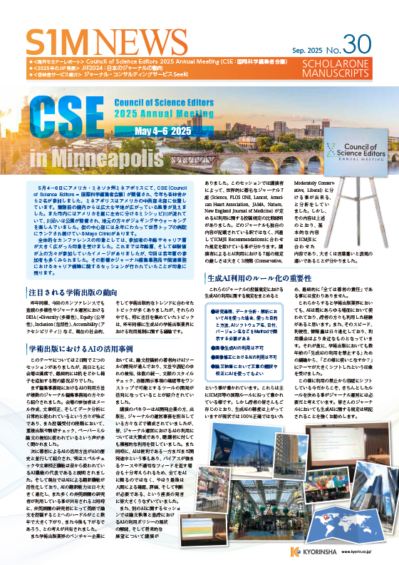 S1MNEWSにて、世界の学術出版に関する情報やトレンド、ScholarOne Manuscripts™に関する情報やティップスを発信しています。杏林舍の学術出版に関する取り組みが詰まっていますので、ぜひご覧ください!